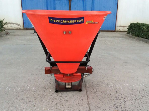 機(jī)具動(dòng)力來(lái)源于選配的配套拖拉機(jī),運(yùn)動(dòng)狀態(tài)通過(guò)萬(wàn)向聯(lián)軸器傳遞到機(jī)具的齒輪傳動(dòng)箱再傳至撒肥盤(pán),進(jìn)行撒肥作業(yè)。 顆粒狀或球狀化肥經(jīng)人工倒入,進(jìn)入機(jī)具的肥料斗箱,通過(guò)手動(dòng)肥料調(diào)節(jié)控制桿,肥料落入撒肥盤(pán),撒肥盤(pán)做旋轉(zhuǎn)運(yùn)動(dòng),通過(guò)旋轉(zhuǎn)離心力將肥料以圓周狀形式拋至土壤表面。 |